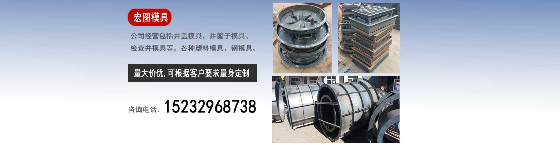 保定宏圖模具科技有限公司專業生產井蓋模具,檢查井模具,隔離墩模具質優價廉。我們生產的模具產品質量強勁、經久耐用。是您值得信任的選擇。我們堅持以客戶第一位原則。以客戶需求為我們的發展方向。不斷地提高擴大我們的生產范圍、生產能力,滿足客戶的對模具的一切要求,隨時保持與市場的無縫鏈接。真正的做到市場上的“需要我們有什么、客戶需要什么我們滿足什么”。我廠生產的模具具有光亮度高、韌性強、不變形、易脫模、破損率低等特點,產品銷往全國各地,并受到了廠家的青睞和好評。